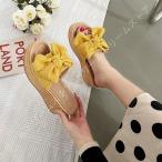 厚底 サンダル ミュール 蝶結び オープントゥ ウェッジソール