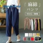 麻綿パンツ レディース ウエストゴム テーパードパンツ 麻綿風パンツ ゆったり ボトムス 9分丈 無地 柄 美脚 リネンパンツ おしゃれ cbrx953