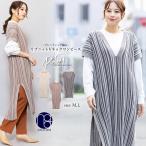 大きいサイズ ゆったりサイズ チュニックワンピース 重ね着コーデ レイヤードコーデ ロングニット V首 サイドスリット ストライプ
