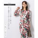 タイト 細見え スタイルアップ ウエスト くびれ 脚長効果 ヒップアップ効果 S M L XL 秋冬 洗える 洗濯OK ジャージ 薔薇柄 バラ柄 フォーマル パーティー 結婚式 通勤 お呼ばれ