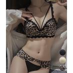 レオパードブラ ブラジャーショーツセット バスト盛れる 小胸 下厚ワイヤレスブラ 脇高ブラ 花柄レース 女性下着 韓国風