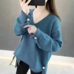 深めのスリットやデコルテがしっかり見えるVネックニットセーター