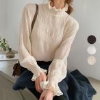 シースルートップスレディース 重ね着インナー長袖 ギャザーブラウスきれいめ シフォントップス着やせ おしゃれプルオーバー
