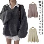 ニット リブニット ボリュームスリーブ ぽわん袖 Vネッ