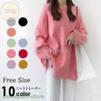 商品名 トレーナー レディース オーバーサイズ 長袖 ニットセーター ニットトレーナー ス ニット セーター ロング丈 大きいサイズ 秋冬 厚手 ゆったり ラウンドネック スリット ビッグシルエット 無地 かわいい おしゃれ ピンク グレー 白 黒 全10色