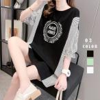 レディースプルオーバーイレギュラーヘムビッグtシャツストライプ切り替えシャツブラウスサイドスリット袖フリル