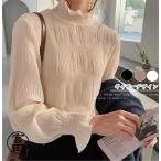 シアーブラウス 長袖 シフォンシャツ 春秋 トップス インナー シャツブラウス レディース プチハイネック フリル トップス 着やせ おしゃれ プルオーバー インナー 透け感