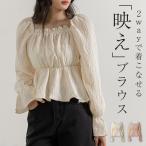 メール便送料無料 ペプラム ブラウス レディース 長袖 フリル オフショル スクエアネック 2way トップス シャツ おしゃれ かわいい 春 秋 トレンド 定番 薄手 ふんわり きれいめ カジュアル ナチュラル フェミニン 着回し キャンディスリーブ メロウフリル ぽわん袖 二の腕 華奢魅せ