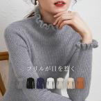 メール便送料無料 「首元ぱっと華やか」リブニット トップス 長袖 セーター レディース きれいめ リブ生地 柔らかい インナー レイヤード ハイネック 首 袖 フリル プルオーバー セットインスリーブ 細見え 伸縮性 上品 オケージョン 中厚手 黒 白 春 秋 冬