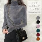 ベロア 長袖 Tシャツ ハイネック カットソー トップス ベルベット レディース 春 秋 冬 プルオーバー シンプル 無地 オフィス 通勤 光沢 インナー レイヤード お出かけ ロンT 普段着 デイリー タイト 長袖Tシャツ