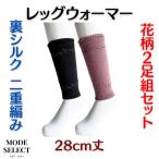 毛混シルク二重編みレッグウォーマー、花柄、長さ約26cm、2組セット、色はお任せください。