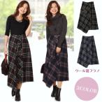 おしゃれ チェック柄 ロングフレアスカート 起毛 厚手