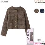 グンゼ、Tuche(トゥシェ)レディースのツイードノーカラージャケット。