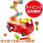 大好きな消防車で色々遊べるボリュームたっぷりなアイムトイ社(Im TOY)の大工おもちゃとしても遊べる木製のプルトーイです。