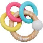 パステルカラーが可愛い赤ちゃんのお手てにぴったりサイズのラビィ社(LABY)の木製ラトルおもちゃです。