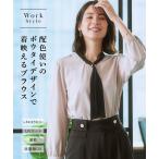 【コメント】【大人っぽい細ボウタイが映えるブラウス】ジャケットスタイルがさりげなく華やぐ計算設計。時短も叶えるアクセいらずな1枚。■ポイント ・滑らかでとろみのあるトレッチパウダーサテンシリーズ。 ・アクセがなくても着映えるボウタイデザイン。