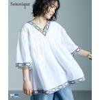 【コメント】■デザイン ・襟元や袖口に施された幾何学刺繍が目を惹くエスニック調ブラウス ・デコルテをすっきりと見せるVネックと細かなタックデザインが上品な印象をプラス ・裾に向かって広がるAラインシルエ