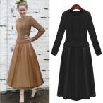 ニットトップスとプリーツスカートのドッキングワンピースです。タイトなトップとボリュームのあるフレアスカートで可愛い印象に。2カラ―