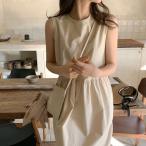ワンピース レディース 40代 50代 春夏 綿 無地 ノースリーブ