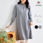 ◆レディース チュニック ロング丈 フリルネック ハイネック Iライン ワンピース 長袖 パール 大きいサイズ ストレッチ 体型カバー 上品 エレガンス 無地