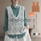 トレンドの透かし編みでインナーとのレイヤードスタイルを楽しめるレースベスト。
