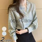 連携キーワード:ブラウス レディース きれいめ 40代 春秋 新作 オシャレブラウス 無地 シャツ 長袖トップス レース vネック ブラウス 大人 通勤 ゆったり シャツ 30代 50代