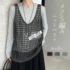 ニット ベスト レディース レイヤード 春 秋 冬 無地 薄手 ニットベスト トップス セーター セーター ノースリーブ メッシュ 透かし編み プルオーバー チュニッ