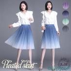 スカート チュールスカート 夏 秋 膝丈 プリーツ フレア グラデ