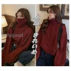 ビッグタートル ボリューム ケーブルニット トップス ゆったり カジュアル 上品 長袖 / レディース タートルネック ざっくり ニット セーター オーバーサイズ ボリューム袖 無地 清楚 きれいめ 赤 白 アイボリー ワインレッド レッド グレー オレンジ 新作