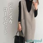ワンピース ジャンパースカート vネック 大人 秋 冬 秋冬 レディース 大きいサイズ きれいめ おしゃれ オフィスカジュアル セットアップ ジャンスカ 膝丈