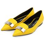 【シリーズ】sergio rossi セルジオ ロッシ フラットパンプス レザー ロゴ メタルプレート ポインテッドトゥ 付属有 レディース 38 ミモザ 黄