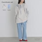 ロンT レディース 長袖 レースプリント カットソー 綿100% コットン100% ニュアンス ヴィンテージ感 かすれプリント スリット ギャザー トップス Tシャツ プリントTシャツ プリントT クルーネック Uネック おうちで洗える カジュアル ナチュラル 大人女子 大人可愛い お洒落可愛い 大人カジュアル Sサイズ Mサイズ Lサイズ LLサイズ 3Lサイズ XLサイズ フリーサイズ ぽっちゃり 体型カバー 大きいサイズ 10代 20代 30代 40代 50代 60代 可愛い系 レトロ クラシカル パンツ デニム ジーンズ ボトムス デニムパンツ ペインターパンツ ワイドパンツ ロングデニム イージーデニム ストレートデニム ワイドデニム ロング丈 フルレングス 10分丈 ワイド ゆったり ゆるっと ゆるい ゆる リボン ワンポイント ポケット 春 秋 冬 ロングシーズン シンプル ラフ プラスサイズ 低身長 高身長 グレージュ サックス 水色 ブルー 202509 2点セット プレゼント 福袋 コーディネートセット コーデセット 中身が見える福袋 上下セット ギフトセット[ID]12co0py[レースプリントロンT×リボン付きデニムペインターパンツコーデ2点SET]