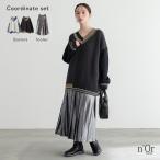 ニット カットソー 裏起毛 レディース トップス 長袖 ドッキング チルデンニット プルオーバー 異素材 アシメ あったか 秋 冬 ロンT トレーナー スウェット スエット セーター Vネック ナチュラル ミディ丈 ミドル丈 チュニック丈 配色 無地 異素材MIX レイヤード 重ね着 防寒 カジュアル シンプル モード マニッシュ キレカジ フェミニン ゆったり ゆる 楽ちん Sサイズ Mサイズ Lサイズ LLサイズ 3Lサイズ XLサイズ フリーサイズ ぽっちゃり 大きいサイズ プラスサイズ 10代 20代 30代 40代 50代 60代 低身長 高身長 スカート ロングスカート マキシスカート プリーツスカート ロング丈 マキシ丈 プリーツ ボトムス ミモレスカート メタリック メタリックカラー ニュアンス エフォートレス ミモレ丈 裏地 裏地付き ウエストイン タックイン 軽い 軽量 ウエストゴム おうちで洗える 可愛い系 杢グレー ブラック ダークシルバー 202512 2点セット プレゼント 福袋 コーディネートセット コーデセット 中身が見える福袋 上下セット ギフトセット[ID]14co0u3[チルデンニット切替裏起毛プルオーバー×メタリックプリーツスカートコーデ2点SET]