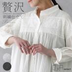 ブラウス レディース トップス 七分袖 ロング丈 刺繍