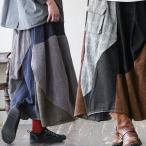 スカート ワークスカート アシンメトリー アシメ 変形 ヘリンボーン チェック コーデュロイ ロング丈 フレア Aライン コットン100% ポリエステル100% クレイジー リメイク風 アメカジ カジュアル レディース メンズライク PATY paty