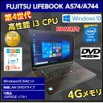 中古パソコン ノート 中古ノートパソコン Windows10 SSD 換装対応 FUJITSU LIFEBOOK A574/A744 第4世代 Core i3 メモリ 4GB HDD 320GB 無線LAN DVDドライブ Windows10 64ビット 操作マニュアル OFFICE付き 送料無料
