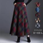 スカート レディース ロングスカート マキシ丈 スカート ボトムス チェック柄 Aライン フレア ラシャ ハイウエスト 秋冬 体型カバー おしゃれ 着痩せ エレガント