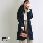 フード付き 高見え 2way ノーカラー ロング丈 シンプル 取り外し 通勤 きれいめ オフィス 上品 黒 白 ピエロ Pierrot