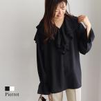 ブラウス チュニック丈 フリル襟 体型カバー 袖フリル 長袖 ピエロ Pierrot