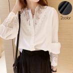 胸元と袖のレースがお洒落なレディース用ブラウスです。