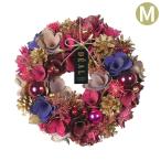 高級感のある特別なクリスマスをイメージしたリース。ダークで落ち着いた色合いにきらめく金銀のパーツを合わせました。