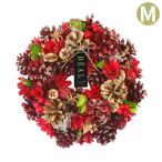 深い赤色を基調に、キラキラ輝く木の実やパーツを使用。大人気のクリスマス定番リースです。