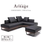 本革のような肌なじみが良いEPUレザーを使用したカウチソファ。PUレザーに比べ傷や水に強く、ペットがいても安心です。お部屋への圧迫感を無くすため、背もたれは低く設計されています。ブラックの中にアクセントデザインとしてウッドラインを入れ、シャープで軽い印象を与えてくれます。