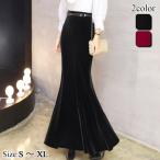 マーメイドラインストレッチロングスカート(SKIRT)。動きやすいストレッチがウエストからヒップにかけてのラインを美しく魅せ、ゴールドアクセントのエナメルブラックベルトでウエストマークすることで脚長効果とスタイルアップ効果が◎。マーメイドのきれいなシルエットはお仕事やデイリーユースなど、着用の幅が広がります。