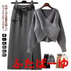 2点セット Vネック クロスニット+ニットスカート 上下セット セ