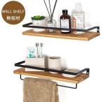 ウォールシェルフ ラック タオル掛け 洗面所 壁 壁掛け棚 2個セット 天然木製