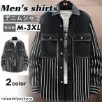 デニムシャツ メンズ 長袖 ボタンダウン 綿 ストライプ 開襟 カ
