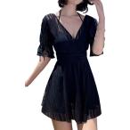 「シックでキュートなワンピーススイムウェア」ブラックのかわいいドレスを思わせる、ワンピーススタイルのスイムウェア。