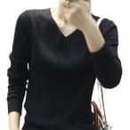 「綺麗に見せるVネック」 首元を美しく見せてくれるVネックに、細めのリブ編みがしっかり縦ラインを強調してくれます。
