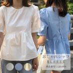 トップス シャツブラウス シャツ ブラウス 半袖 夏 デザイン レディース ホワイト ブルー イエロープルオーバー ギャザー コットン Uネック フリル 無地 半袖 体型カバー 大きいサイズ フレア シンプル カジュアル風 可愛い 美ゆる きれいめ オシャレ 着痩せ 20代 30代 40代